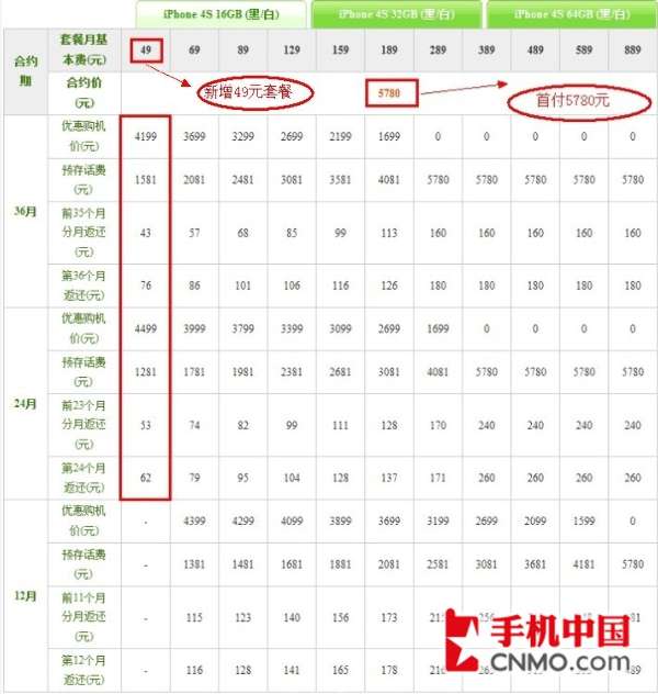 电信版iPhone 4S新增49元套餐(点击放大)