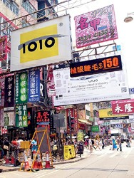 图片说明:被誉为“书店街”的旺角西洋菜南街,每三步五步就可抬头见各色“书店”字样的招牌,而且往往同一栋楼里容纳了不止一家书店