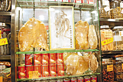 海味店80岁姓杨店主称,“镇店之宝”是一块花胶,价值26.8万元,店内另有冬虫草、人参、血燕及鲍鱼等,总值达数百万元,虽然每月要付数百元防盗费,今次能保住数百万元货物,十分值得。