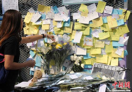 经过早前一连串繁忙的救援后,4日的南丫岛气氛特别安静,与昔日熙来攘往的景象截然不同。榕树湾渡轮码头入口处,有人自发用香炉和鲜花简单搭成一个悼念处,幷在墙上写下“往生净土”,供公众向死难者送上鲜花、送上祈祷。