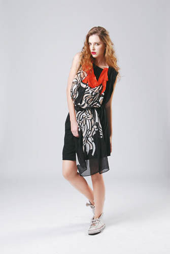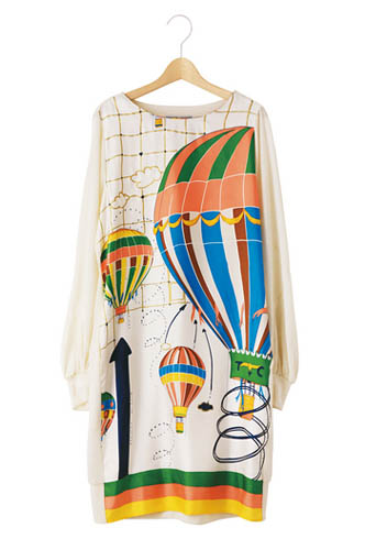 今季,以红、蓝、绿3种鲜艳颜色为主,加上设计师拿手的趣致图案,如热气球、猫咪、蓝天白云,心心流星雨等,可谓贯彻了品牌梦幻童话的风格。再以jumpsuit、maxi dress、tube dress等充满阵阵欧陆悠闲的剪裁,配合雪纺、色丁、茄士咩等高贵的物料,打正旗号继续享受调皮可爱的「大人之美」。
