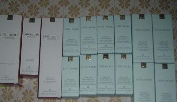 先来EL家,小棕瓶眼霜、50ML的面部精华液,还有红石榴洗面奶、水、乳液