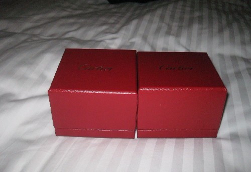cartier对戒,跟许多姐妹们大牌云集地败相比,这算是小小的东西啦,但是就是冲着这个去买的啦,老公在上海看了很久,都涨了两次价了,最后证明真心不合算,这是后话—–上图了
