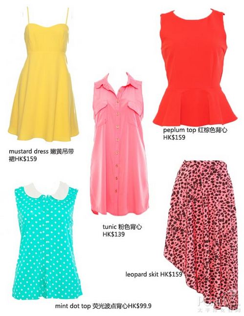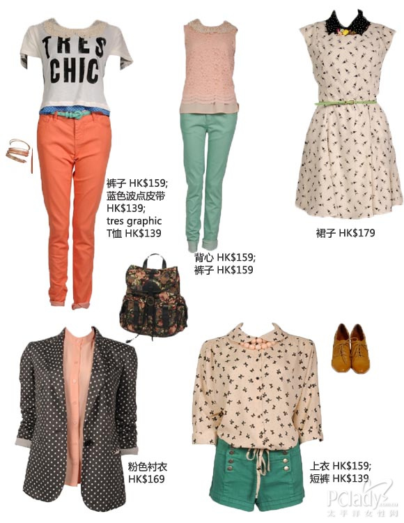 系列以60 年代为设计灵感,建议用鲜艳的裙或裤配衬单调的米白色上衣。有大量可爱少女印花图案和今季流行的peter pan 衣领,裤子亦采用高腰设计。
