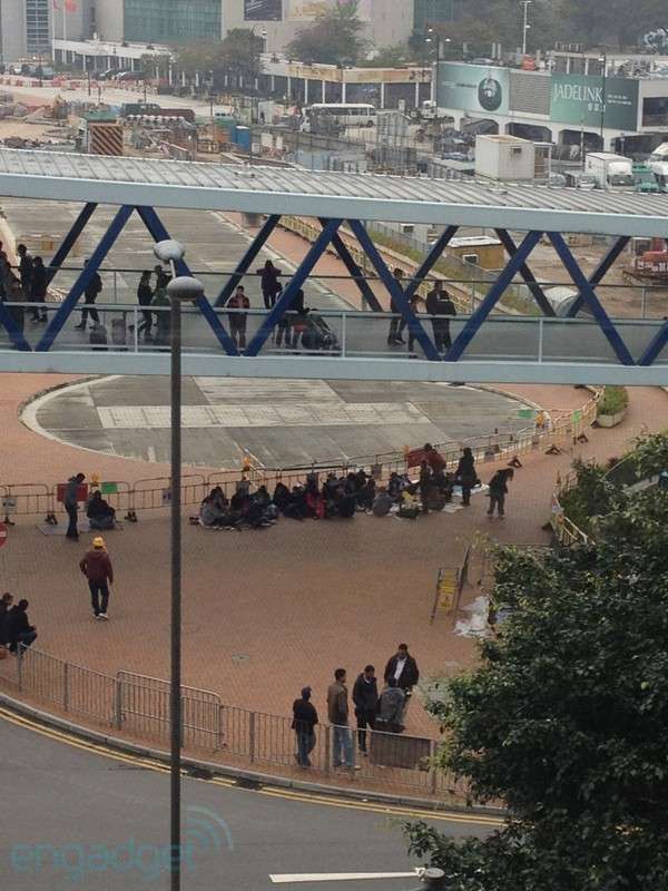 临近星期五新iPad 的开售日,我们发现Apple 香港的IFC 旗舰店外面的行人天桥上下已经聚集了疑似黄牛党的人士,他们就算被警方劝告离开之后还是会回来,似乎不准备这么快放弃。不过,他们恐怕是在做无用功了。