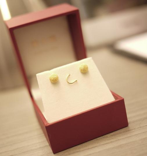 嘿嘿 给奶奶买耳环的同时我也看了看 结果看上一副白珍珠的 销售大姐真是很会卖东西 说这么多对白珍珠耳环 这对品质最好 发粉