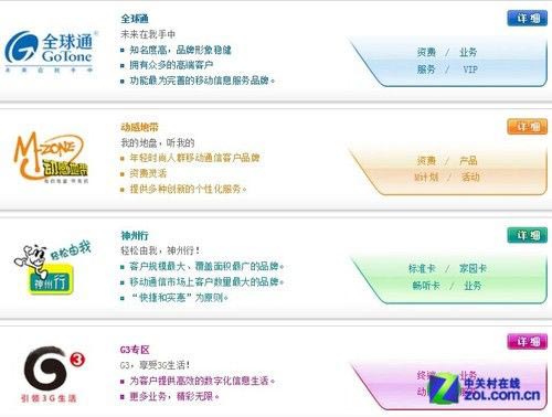 拥有业务:3元卡(2G),畅聊,乐享3G(上网版,聊天版,年轻群体套餐)