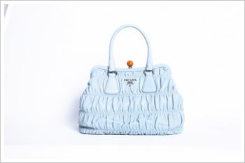 湖水蓝色皱皮设计啪扣手提袋 $24,150