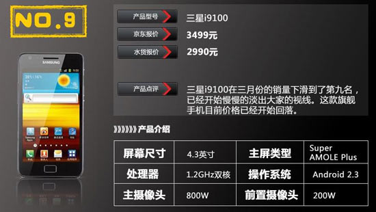 4S轻松夺销量冠军 3月手机销量排行TOP10