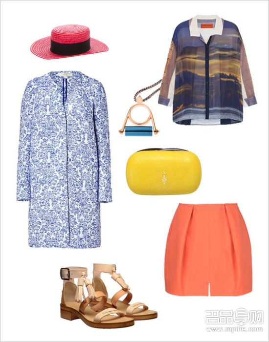 乍暖还寒的初春里,薄款的风衣是衣橱里一件必备的单品,它不仅能够为整体造型加分,还十分实用。宽檐帽既能够帮助你抵御紫外线的侵袭,也能让你更好的享受春日暖阳。有流苏设计的平底凉鞋造型独特可爱,厚厚的鞋底能够大大减弱步行的疲惫感。亮色的短裙搭配定位印花的雪纺衬衫,这样的固定搭配一定要记牢,尤其在匆忙的早晨,能够帮助你节省不少搭配衣服的时间。造型夸张的项链与蛋形的小手包,可以根据自己的喜好随意调整款式与颜色,只要是简单大方的配饰,一定都会出彩。