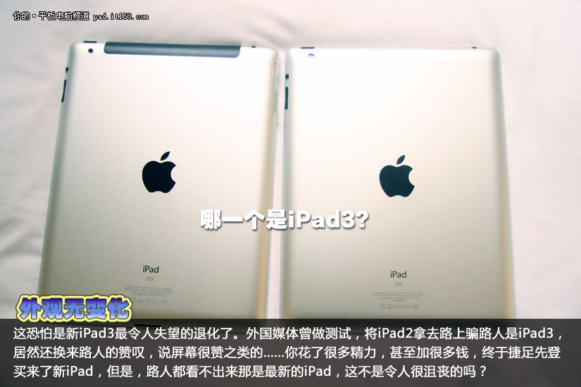 iPad3是否就是你心中所期待的那一部吗?你是否已经买到手开始把玩了?又或者是感到失望而放弃购买?iPad3和iPad2相比,并没有什么非常显眼的改进,相反的,还有不少的退化。接下来,请看笔者为你逐一分析。