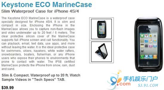 这款iPhone防水套件名为Keystone ECO MarineCase,由Concord Keystone制造推出。用户进行涉水活动的时候都可以用到这款产品,包括潜水、钓鱼、划船和漂流等水上运动。