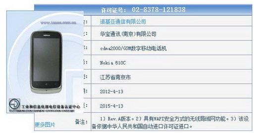 获入网许可 电信版诺基亚Lumia610C亮相