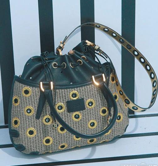 品牌的手袋系列则由实验室内走到花园外,负责配饰设计的 Silvia Fendi 从野餐藤篮中获取灵感,设计成全新 B Fab 手袋。圆身手袋饰以圆孔、窝钉或名贵珠片等不同装饰,再配以不同颜色及图案的索绳布料,七彩缤纷充满夏日感觉,并附上长肩带,可作肩袋或手挽袋。