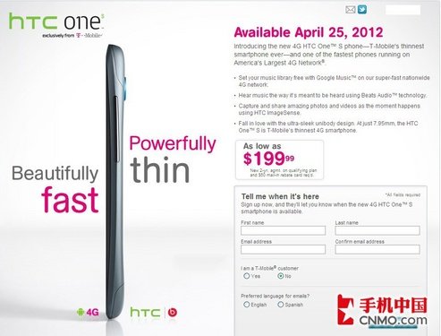 此前有报到称,德国运营商T-Mobile将于本月底正式推出HTC One S这款手机,两年合约价为199.99美元(约合人民币1260元)。总之这款产品离上市已经很接近了,五月份我们应该就能见到One S真机。