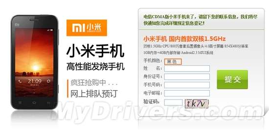 电信版小米手机4月28日开订 须先预存200元话费