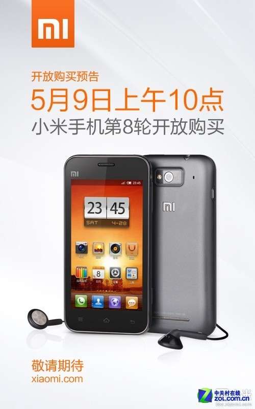 五一假期即将开始前夕,小米公司在官网微博发布消息:小米手机第八轮开放购买即将在5月9日上午10点启动。