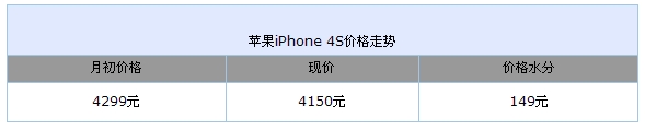 苹果iPhone 4S是一款颇受大众喜爱的机型,虽然外观与前作iPhone 4没有什么区别,但A5双核处理核心以及更加智能的Siri语音助理功能的采用还是为其赢得了不少掌声。至于价格,本月表现可以用“稳中有降”四字来形容,月初价格为4299元,现在市场报价4150元,蒸发掉近150元售价。