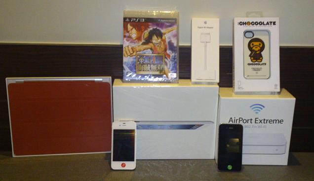 到港后,第一件事,就是要买老公的IPAD3,本来做好功课,要去IFC买,但海港城有百老汇和丰泽,老公说,要先去海港城看看,我觉得天确实不早了,就听了老公的话,没想到,一锤定音,IPAD3就在百老汇搞定了,白色,16g,wifi+4g,没有硬性加任何套餐,就是官网价格,港币4888,但是,一定要听这个但是哦~~那个销售在你买单前,会拼命的推荐你套多好,贴膜多好,我们非常肯定的说不要套,因为他这没有我们想要买的,他一看,我们不买套了,就改说膜了,说不贴膜就划的,翻来覆去的说,说的我和老公都很无奈,最后只好说,那好吧,贴个膜吧~~最终贴了个膜,买IPAD3时,顺便又买了一个Apple Composite AV 线缆,出了百老汇,直奔SONY专卖,看了看本打算买的PS3的游戏海贼无双,一看价格,没买出来了,因为价格没比国内便宜多少,可后来,我跟老公说,国内淘宝买在加上运费,其实价格差不太多了,背着抱着一边沉,结果,在第三天时,我们回来SONY把海贼无双买了。