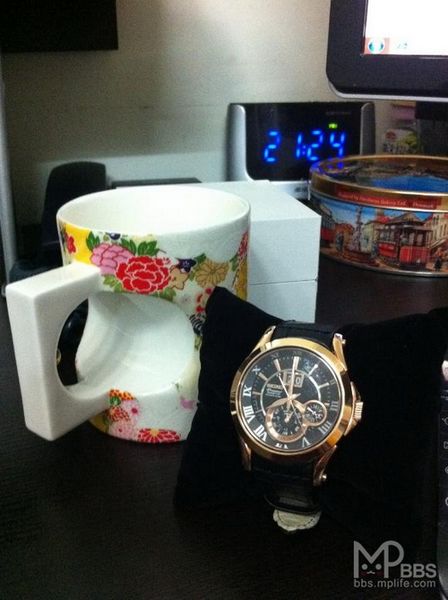 SEIKO最新premier系列。HKD$7700打八折。杯子是在九龙又一城购物送的“琉璃工坊”。