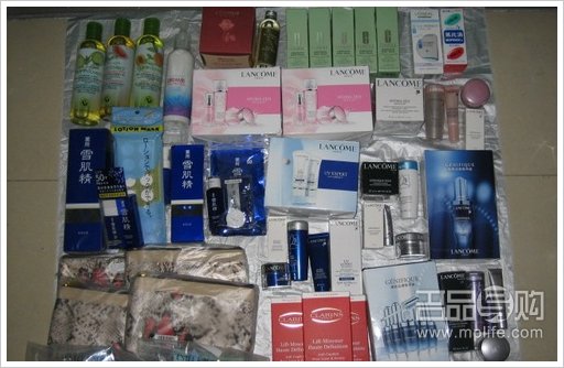 雅诗兰黛:买满4个950,拿了4套8件套,送的化妆包的走向真是越来越囧,不知道如何评判的好,又有MM买了一套粉色系列套装,真心好用呢~~ 送的8件套内容是:蓝色洗面奶30+防晒润唇膏+唇彩+眼膜1片+保湿精华7+保湿霜15+ANR眼霜5+化妆包,非常超值啦!