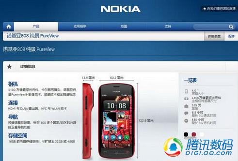 据悉,诺基亚808 PureView行货版本提供了红色、黑色和白色等机身色彩款式选择,随机包装提供了1400毫安时BL-4D电池、AC-50 MicroUSB 充电器、CA-190CD充电数据线、WH-209立体声耳机以及NFC info card、快速指南、用户指南和产品信息宣传册等等。
