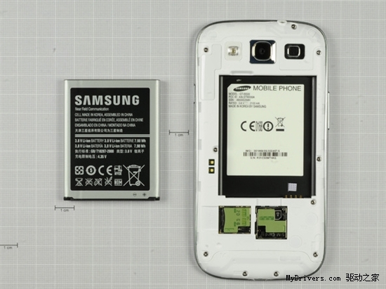 Galaxy S III内置的2100mAh电池上内置有NFC模块,支持S Beam功能。