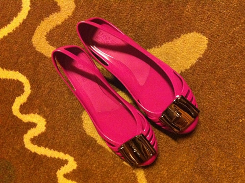 去酒店放在行李稍做休息后就出发了,第一站铜锣湾SOGO,败了Ferragamo的新款塑胶凉鞋,玫红滴,1600港币。