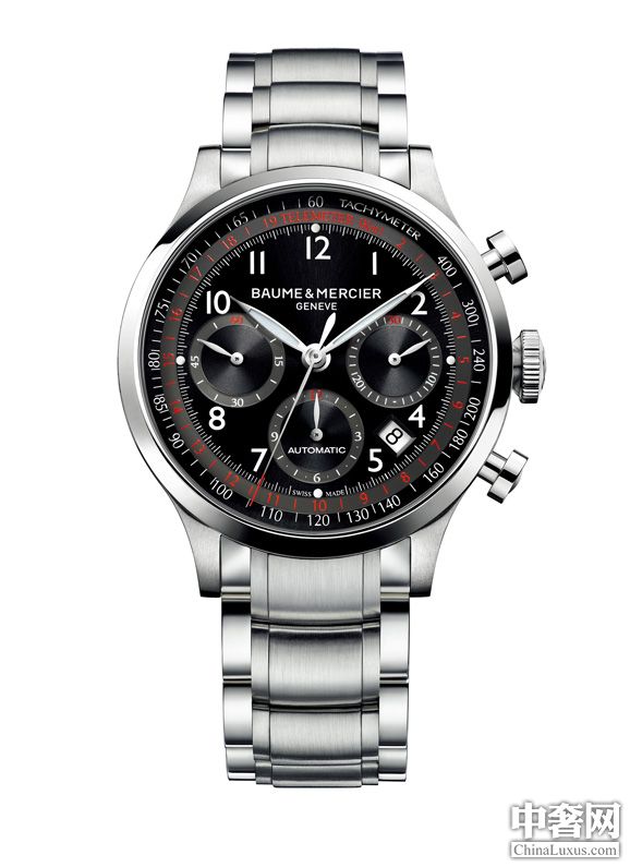 卡普蓝10062腕表(直径42毫米):太阳缎面打磨黑色与缀以蜗形饰纹的炭黑色表盘,红色测速仪,白色测距仪。零售价格:35900元。
