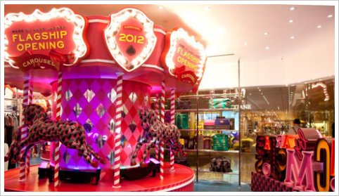 Marc by Marc Jacobs 旗舰店在香港太古广场开幕了!昨天我们到达现场犹如置身游乐场一样,感受热闹的欢乐气氛。走过红白帐幕大门,就看见粉红木马置在店中一角,还有糖果机、不同游戏在这限定的时尚乐园留下欢乐纪念!除了佈置吸引,店内展示的最新2012秋冬男女装及 Pre-Fall 首饰系列也是重点之一。淡灰、深蓝、墨绿等主调,凸显女性的刚硬型格一面!如果大家经过金鐘太古广场,记得要到店裡走走,感受一下时尚嘉年华的欢乐气氛,也可以先睹為快,率先体现品牌的秋冬潮流!~
