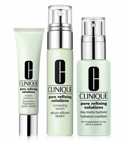 炎夏天气、年龄增长,都会引起毛孔粗大的问题。CLINIQUE 全新细緻毛孔紧緻精华、细緻毛孔控油补湿霜,以及细緻毛孔无瑕霜,含独特的毛孔细緻复合物,还有天然精华等成份,不但能即时收细毛孔,并温和清理角质,保持毛孔洁净畅通,控油同时平衡水油成份,保湿功效更令细胞饱满,紧緻毛孔。无瑕霜更含有散射微粒及柔焦因子,减淡瑕疵之餘,备有抗氧及抗炎作用,肌肤变得年轻,无瑕肌肤令人爱不释手。