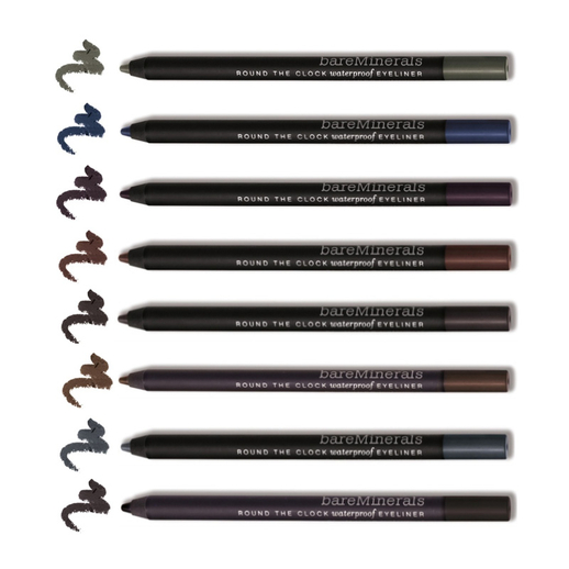 bareMinerals 特别推出全新 ROUND THE CLOCK 防水眼线笔,当中的维他命 E 及 C 等成份有滋养及抗氧功能,其天然矿物著色剂,可紧贴眼皮而不会伤害眼睛,而且笔芯柔滑易推开,持久显色,高效防水眼线可保持 24 小时,8 种色系更以时间命名,配合每天 24 小时的生活造型,重拾了化妆的意义。