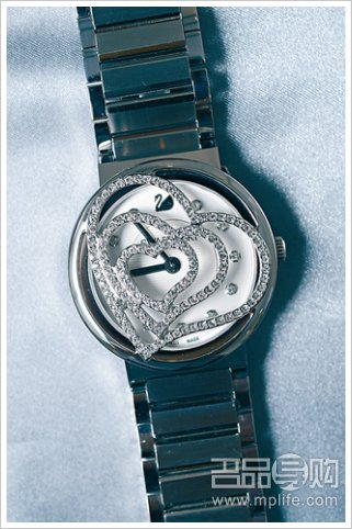 表面是一个可旋转的镂通心形表盖,可随时拆出,虽然阻碍了看时间的方便,卖相却满分,表身采用Pointiage专利低温陶瓷镶嵌技术,颜色变化更多。