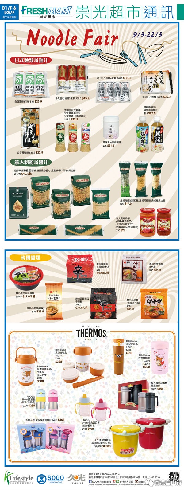 香港打折:sogo崇光百货尖沙咀店B1/F & LG/F 崇光超市购物优惠(16年3月9日至3月22日)