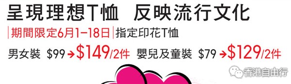 香港打折:优衣库UNIQLO指定印花T恤限定购物优惠(至15年6月18日)