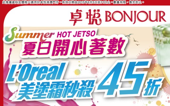 香港打折:卓悦Bonjour最新门市优惠(15年6月5日至6月11日)