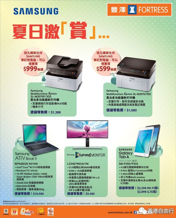 香港打折:丰泽SAMSUNG夏日激赏购物优惠(至2015年6月30日)
