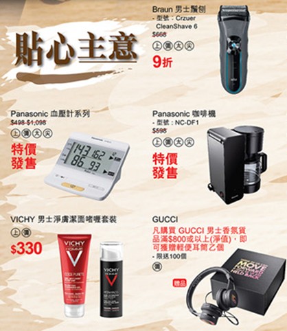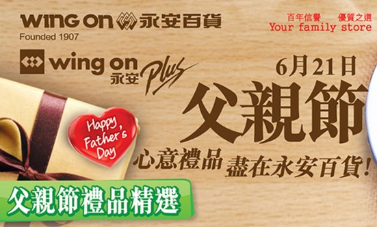 香港打折:永安百货父亲节礼品精选购物优惠 (至2015年6月21日)