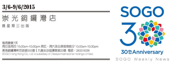 香港打折:SOGO崇光百货铜锣湾店最新购物优惠(15年6月3至6月9日)